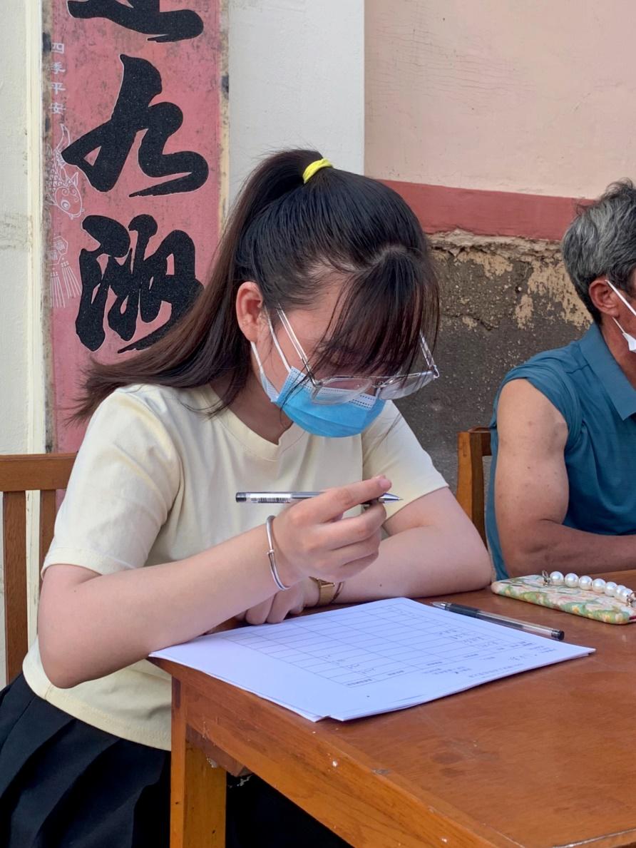 八月上旬,正值暑期,为了保障全市人民的生命健康安全,医护人员们夜以继日的进行核酸检测。吴彤彤主动报名,并被安排在社区采样点处帮助核酸检测人员进行信息登记。虽是艳阳高照,登记工作有时因为老人的口齿不清或者声音嘈杂增加难度,但看到医务人员穿着密不透风的防护服依然坚守工作岗位,就坚定了吴彤彤认真工作的决心。在登记工作结束之后,吴彤彤与社区工作人员始终保持联系,并表示,如果后期需要信息录入或者其他能帮上忙的地方,她可以随时前往。