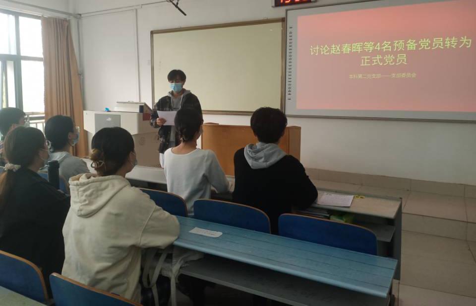 点击:3月2日,黄色小说 本科第二支部在S1-215召开正式党员接收讨论会议。会议讨论了关于接收赵春晖等四位同志为中共正式党员的相关事宜。支委会全体成员参加了此次会议。