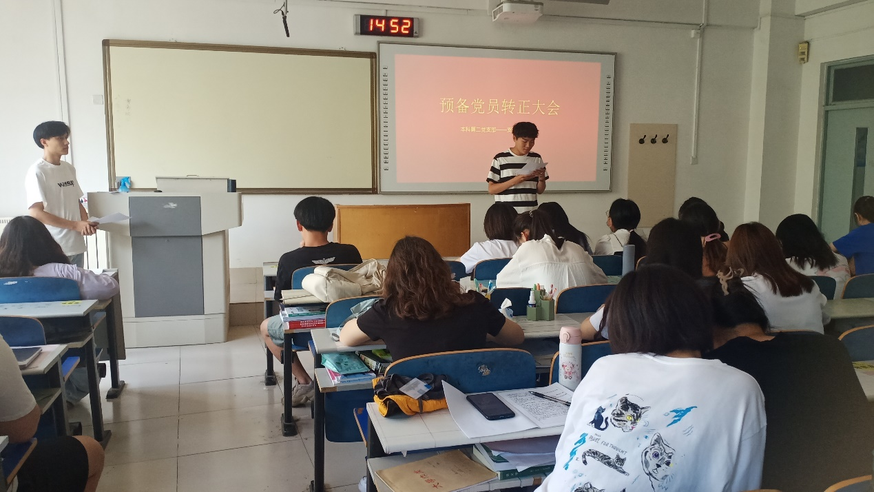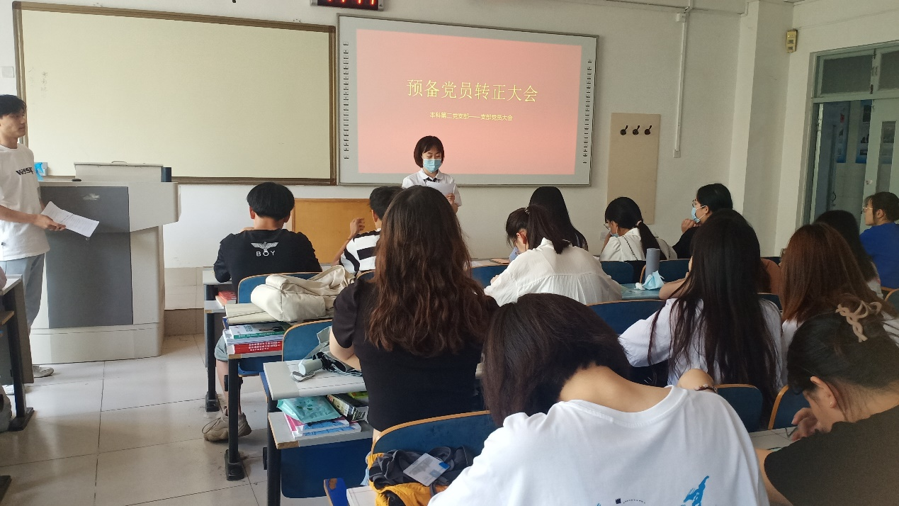 会议严格按照党组织预备党员转为正式党员的程序。首先由各位已满预备期的预备党员宣读转正申请书,尹雪莹等8位预备党员分别进行申请书宣读,宣读内容包含了预备期在工作学习、思想认识等方面的进步和表现,在此期间努力提高自身素养,不断进行自我学习、自我提高、自我完善;努力提高政治思想素养,表达了为共产主义奉献终身的决心。随后由入党介绍人介绍各位预备党员在预备期间的表现情况,由预备党员的培养考察人介绍预备党员在预备期间的教育和考察情况。经全体党员共同讨论并发表意见,以及党支部大会讨论后,投票表决转为正式党员的同志。