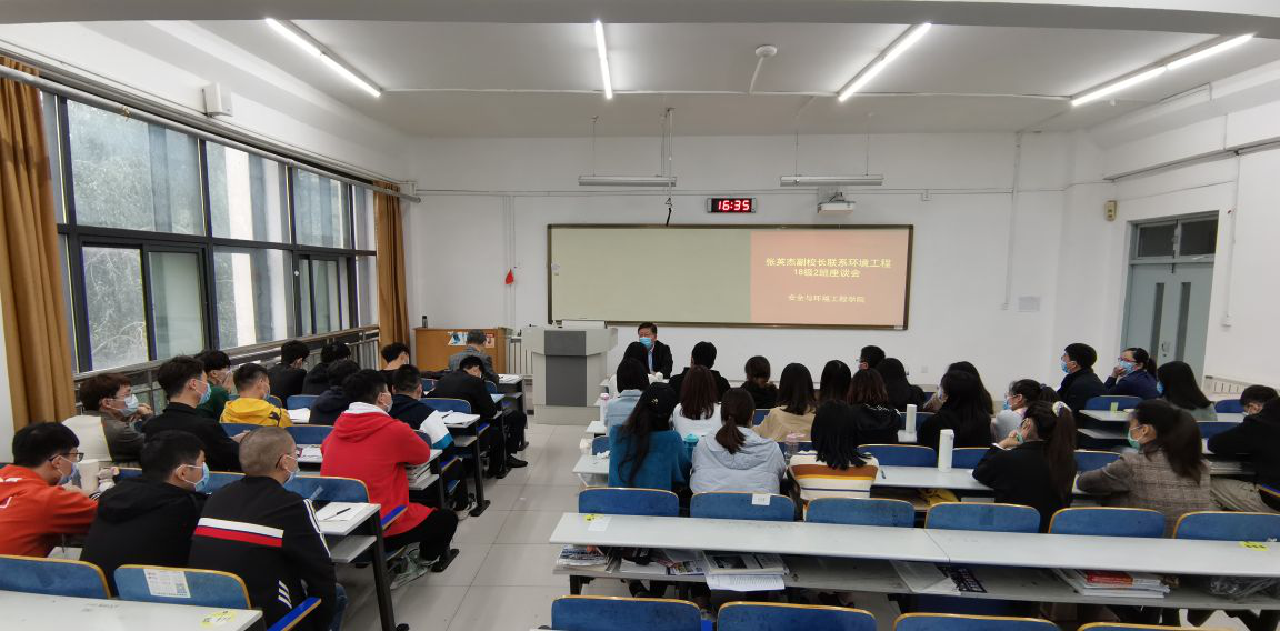 10月15日下午,校党委常委、副校长张英杰在S1-209教室参加联系班级环境工程2018-2班座谈会,同学面对面对话交流。