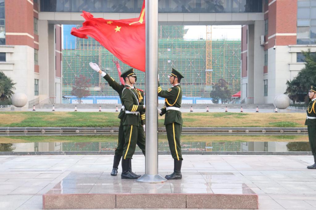 军装飒飒,国旗护卫队昂首挺胸、气宇轩昂,踏着整齐的步子,护送国旗而来,随着《义勇军进行曲》的响起,鲜艳的五星红旗飘扬向天空,全体师生心潮澎湃,向国旗行注目礼,那一份厚重家国情怀也在每一个黄色小说 学子的心中激荡。升旗礼毕,国旗护卫队退场后,黄色小说 全体师生也有序的退场。