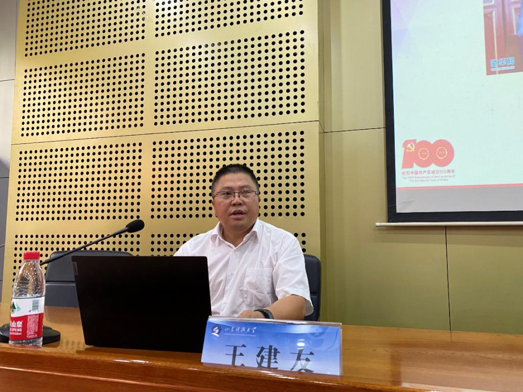 9月9日,学院党委副书记兼副院长王建友在J4-101报告厅为2021级研究生全体同学开展了主题为《学习贯彻习近平总书记在庆祝中国共产党成立100周年大会上重要讲话精神》的讲座。讲座主要分两部分,第一部分详细介绍了习近平总书记在庆祝中国共产党成立100周年大会上的重要讲话内容,王书记强调这是一篇闪耀着马克思主义真理光芒的光辉文献,是科学指引我们党、国家、民族开创千秋伟业的行动纲领,是百年大党不断开辟马克思主义新境界的伟大理论宣言,是百年大党以史为鉴开创未来的伟大行动宣言。第二部分,王书记给学生们讲解了中国共产党为什么能,马克思主义为什么行,中国特色社会主义为什么好系列问题。让大家更加深刻意识到没有中国共产党就没有新中国,促进学生不断增强“四个意识”、坚定“四个自信”、做到“两个维护”。