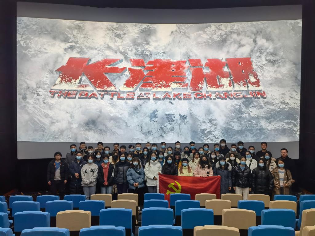《长津湖》以抗美援朝战争的长津湖战役为背景,讲述了志愿军第九兵团义无反顾地赴朝作战,用他们的血肉之躯保家卫国,真实客观地再现了志愿军在极寒严酷的环境下,凭借钢铁般的意志击退美军,最终夺取长津湖战役胜利的故事。“打得一拳开,免得百拳来”,革命先辈们的爱国主义精神、革命英雄主义精神无不展现得淋漓尽致,正是先辈们的浴血奋战,我们才战胜了美帝国主义,守住了家园,守住了国威。176分钟的观影过程,全体党员同志全神贯注,被影片中人物满腔热血和铮铮铁骨所触动,为国家命运赴汤蹈火的革命情怀所感动。影片的一幕幕场景,一句句台词,充分展现了人民军队炽烈的爱国情怀、对党和人民的无上忠诚,生动诠释了伟大的抗美援朝精神。