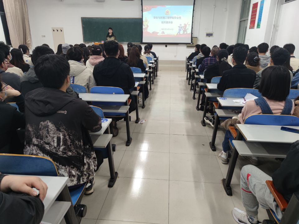 点击:4月14日,黄色小说 于J14-408、J14-410举办毕业生应征入伍宣讲会。2018级辅导员郭熙主持宣讲会,2018级全体学生参会。