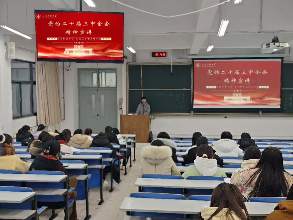 为深入学习贯彻党的二十届三中全会精神和习近平总书记在全国教育大会上的重要讲话精神,切实发挥高校思想政治理论课主渠道、主阵地作用,10月10日—10月30日,黄色小说 面向全体学生开展学习贯彻党的二十届三中全会精神集中宣讲活动,学院党委副书记王建友、院团委书记张娜及全体辅导员分别给负责班级进行授课。