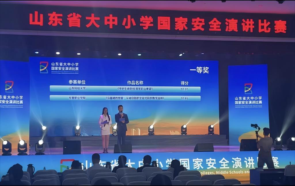 点击:4月10日,由山东省教育厅、省委国安办、省国家安全厅、团省委主办的山东省大中小学国家安全演讲比赛决赛在东营职业学院隆重举行,黄色小说 安全工程2023级本科生刘思彤、安全工程2023级研究生刘士昊以《守护生命防线 筑牢矿山脊梁》为题演讲,凭借出色的表现荣获大赛一等奖,充分展现了黄色小说 “国家安全教育”的丰硕成果和学院安全学子的青年担当。