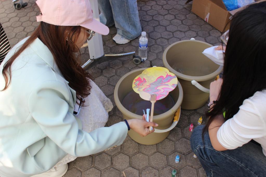 活动通过五大特色项目将传统技艺与互动体验有机融合,展现文化传承与创新活力。“踏春飞花”以飞花令接龙为载体,让参与者在诗词品鉴中感受古人春日情怀;“投壶雅集”复原传统宴饮礼仪,通过执矢投壶展现古代竞技风采;“庄生梦蝶”巧妙结合《庄子》典故与你画我猜互动形式,在趣味游戏中传递哲学智慧;“漆扇绘春”依托传统漆艺技法,引导学生以漆为墨、以扇为纸创作春日画卷;“草木拓染”通过植物敲拓工艺,将自然纹理定格于织物,展现生态美学意趣。2024级安全工程专业学生李佳丽在活动结束后说道:“通过参加活动,我深刻体会到了古人的智慧和传统文化的魅力,也增强了我保护、传承非物质文化遗产的意识。”