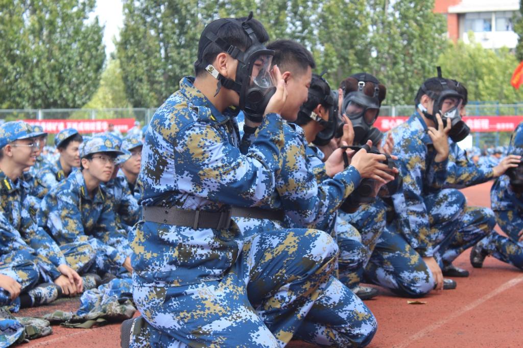 防毒面具、模拟枪械、规范要领……教官们动作迅捷、规范标准,为同学们一一演示,讲解动作要领以及安全注意事项。同学们神情严肃,有模有样地端起模拟枪械,依照教官的指导调整姿势、瞄准目标,每个动作都透着专注,军事技能训练既是青年学子对纪律与担当的深刻体会更是他们赤子情深、保家卫国的生动写照