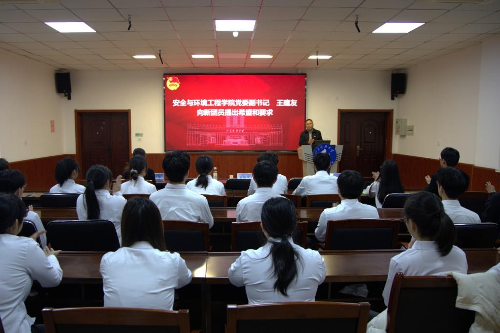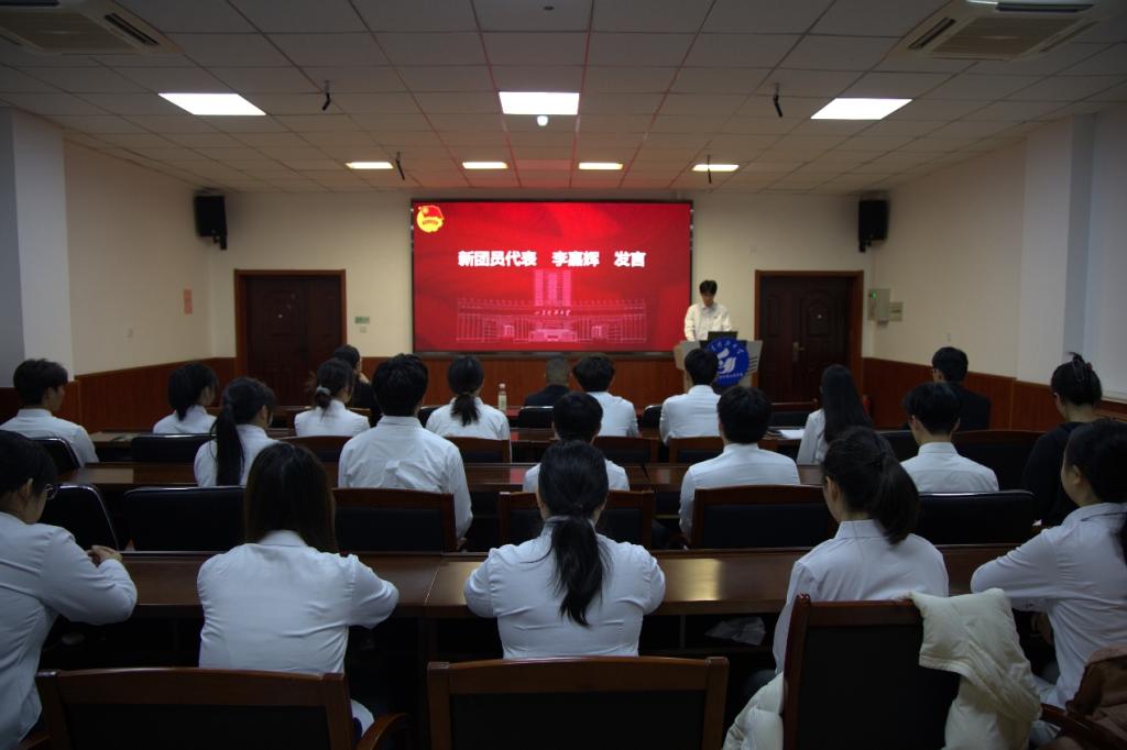 王建友强调,共青团是与党同心、与时代同行先进青年的群团组织,共青团员将个人理想融入国家发展伟业并对发展团员提出三点殷切希望:一要坚定理论学习之基,成为新时代思想的忠诚追随者要主动通过“青年大学习”“主题团日”等平台汲取思想养分,持续深化理论武装,将先进思想内化于心、外化于行,始终保持坚定的政治自觉。二要锻造实干笃行之才,做现代化征程的先锋闯将。要将专业学习与社会实践紧密结合,既夯实学业根基,也勇于投身科技创新、志愿服务一线,在实践中经风雨、见世面、长才干。三要勇担时代使命之责,做从严治团的先锋模范。要以更高标准要求自己,严守团的纪律,在同学中发挥榜样作用,让胸前的团徽不仅闪耀着荣誉,更彰显着责任与担当。