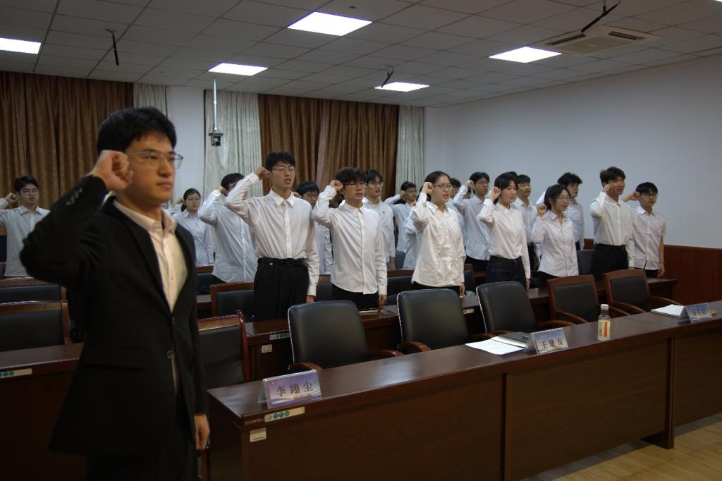 仪式在庄严的国歌声中拉开帷幕。冷冬阳宣读新发展团员名单,并为29名新发展共青团员佩戴团徽;王建友为新发展团员颁发团员证环境工程2022级4班王晓辉同学作为领誓人,带领全体新团员面向团旗庄严宣誓。