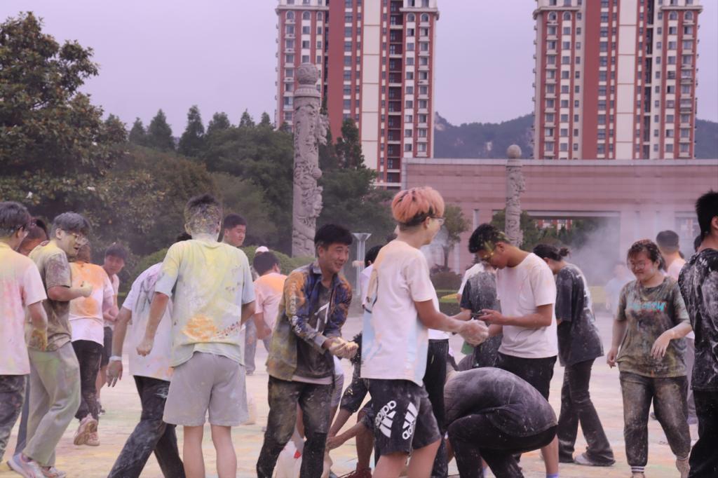 本次活动以泰山广场为起点,途径校园一圈,马拉松协会志愿者领跑,沿途设有医疗点与撒粉站点等为选手们提供保障、加油助威。伴随着开始枪声“彩粉跑”正式打响,同学们冲出起跑线,伴着抛在蓝天下的“彩粉”,向着终点冲去。彩色校园跑结束后,进入到“彩粉大战”环节,气氛再次被推向高潮。大家“彩粉”为武器,挥洒向周围的同学,欢呼、乱战,穿着单一色调衣服的学生们,经彩粉的洗礼变得色彩纷呈“我们追着风向前奔跑,自由的感觉像飞上了云霄,所有压力一瞬间都消散了!2021级安全工程学生戚敬坤如此说道。
