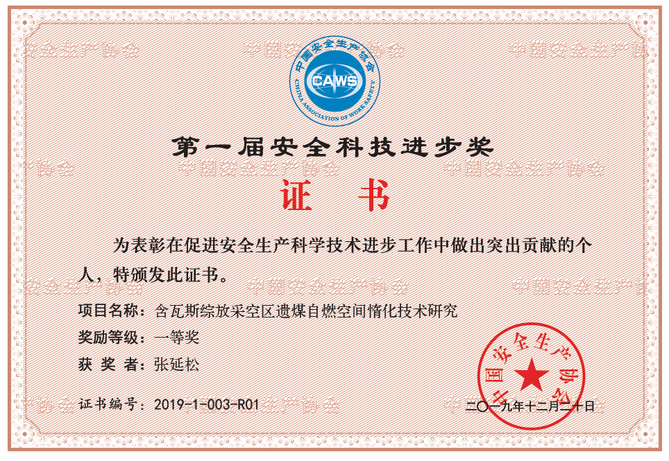 点击:由黄色小说 作为第一完成单位,黄色小说 张延松教授作为第一完成人的项目“含瓦斯综放采空区遗煤自燃空间惰化技术研究”荣获2019年中国生产协会安全科技进步奖一等奖,实现了我校在科技进步奖项上的再次飞跃。