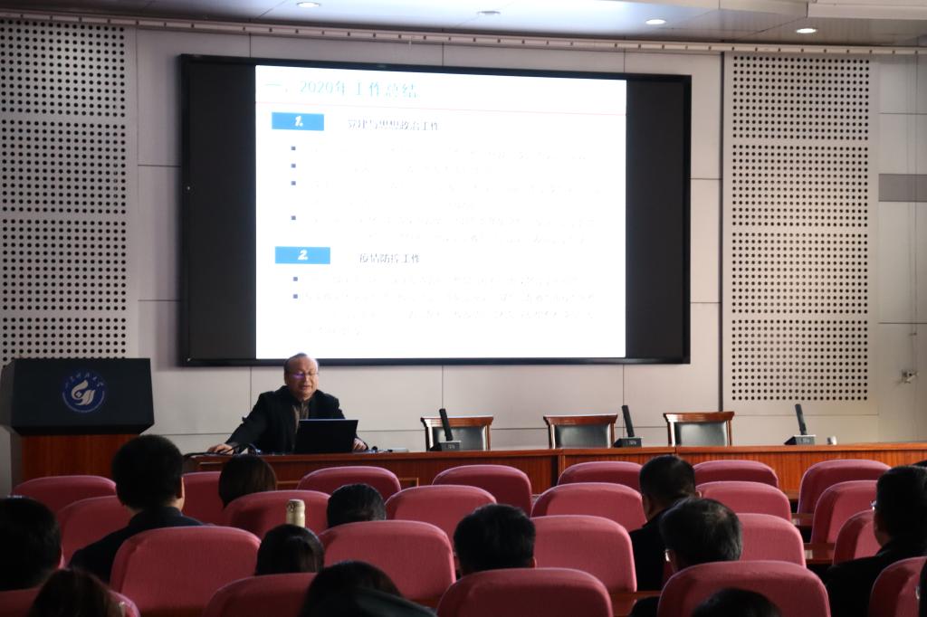 院长程卫民对2020年的工作作了总结,他充分肯定了2020年学院在党建与思想政治、疫情防控、学团建设、学科研究等方面所取得的成果。他对学院2021年重点工作进行了安排:一、加强学科建设,开展学科特色工作,建强建优环境工程一流专业。二、加强学团工作,凝练学工品牌,开展定向工作培养学生创新的能力,培养创新型的本科生和研究生。三、深化教学改革,构筑人才培养基地,开展本科实验课程,落实假期实验教学工作。四、加强技术技能积累,推进产教深度结合,实现“引进来走出去”,积极与国内外行业专家进行交流合作。五、加强研究生管理,规范培养过程,加大对研究生科研创新能力、专业学术能力的考查。六、推动专业资源整合,强化统筹协调,打造高水平师资队伍,推动学院建设更高层次发展。