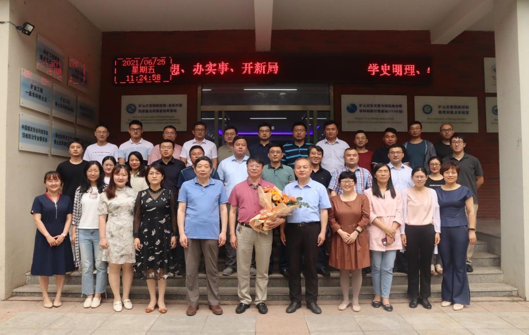 之后张恩生、程卫民为曹庆贵教授献花、颁发纪念品并合影留念。随后,曹庆贵发表荣休感言。他表示,39年的教学生涯,感恩学院对自己的培养以及前辈们对自己的指引,感谢学校一直以来给予的人文关怀和认可尊重,他说“学校好,我们才会更好”,今后也将一如既往地心系学校,关注学校学院的事业,永远为山科喝彩加油。 座谈中,曹庆贵结合自身经历,分享了个人工作体会与师德师风建设经验。他表示,退休并非离开,而是翻开新的篇章,虽然卸下身上的担子,更应时刻关注学校、学院发展,为师生排忧解难;他坦言会常回学院看看,为学院和师生做力所能及的事情,为学科发展做出更多贡献。讲话最后,曹庆贵为学院发展提出许多建议:方向不能丢、学科调研要重视、风险管控课程要增加……他同时承诺,虽已退休,但若有需,召必回。