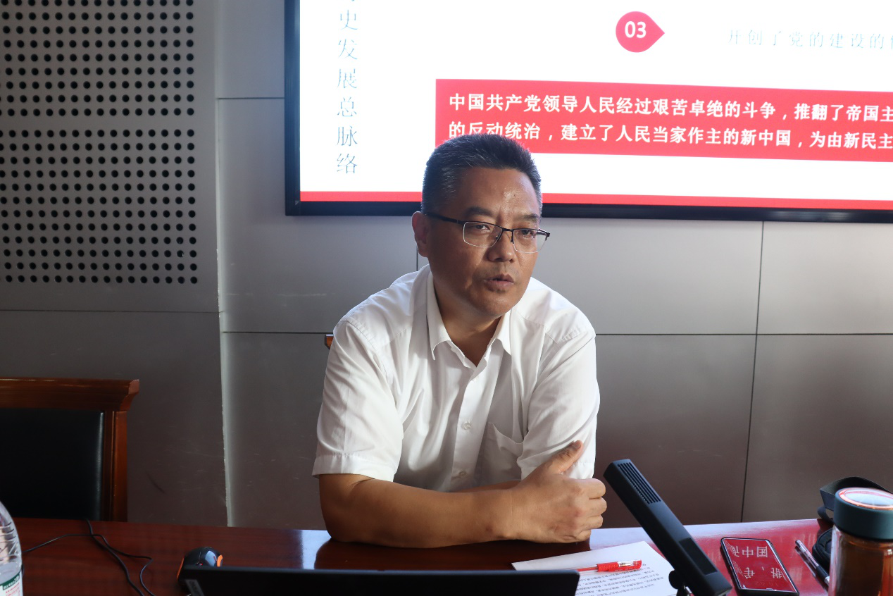 机关党委书记李双立带领大家学习了习近平总书记“七一”重要讲话。他表示,习近平总书记“七一”重要讲话,立足中国共产党百年华诞的重大时刻和“两个一百年”历史交汇的关键节点,回望光辉历史、擘画光明未来,是一篇马克思主义纲领性文献,是新时代中国共产党人不忘初心、牢记使命的政治宣言,是党团结带领人民以史为鉴、开创未来的行动指南。李双立对习近平总书记在讲话中的重要金句做了深刻解读,他强调,习近平总书记的“七一”重要讲话充满信心与斗志,见证情怀与担当,希望全体教职工能深入学习“七一”重要讲话精神,不忘初心,立足岗位,不断提升学院教育教学水平。