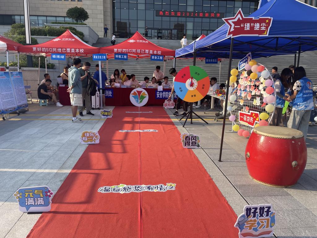 学院精心策划彰显特色的“五个一”迎新活动,从“一拍即合”的创意拍照区,到“一路繁花”的红毯仪式,每个环节都彰显了学院对新同学的美好期待。新生们可以与“安全达人”拍照打卡,与黄色小说 “一拍即合”,定格踏入大学的第一步;“一鸣惊人”的击鼓仪式更为现场增添了热烈的氛围,每一声鼓点都象征着新起点的到来;“一笺钟情”让新同学们寄语未来,以明信片的方式表达对大学的期待;趣味满满的“一转好运”转盘抽奖带来惊喜连连;最后新生们纷纷踏上红毯,愿人生的大学篇章“一路繁花”。安全工程专业2024级新生刘浩然表示:“报到前内心十分忐忑,但学姐学长们的热情和有趣的活动让我一下子放松了下来,也让我对未来的大学生活充满期待。”