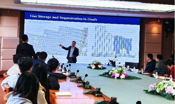 座谈会结束后,任廷祥教授为黄色小说 师生作题为“Longwall Goaf as a Reservoir for Mine Gas Storage and Sequestration: a Novel Decarbonisation Strategy for Underground Coal Mines”的专题学术报告,介绍了利用长壁采空区实现矿井瓦斯储存与封存的技术原理与工程实践,阐述了采空区储气空间的演化特征、气体运移机制及长期密封性保障等关键科学问题,报告内容前沿务实,引发在场师生广泛思考与热烈研讨。