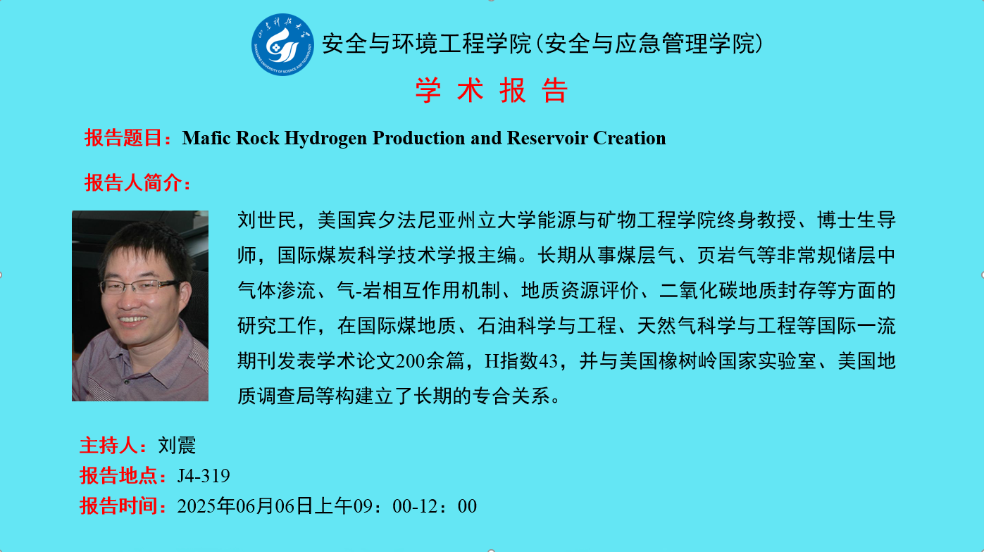 学术报告-刘世民:Mafic Rock Hydrogen Production and Reservoir Creation