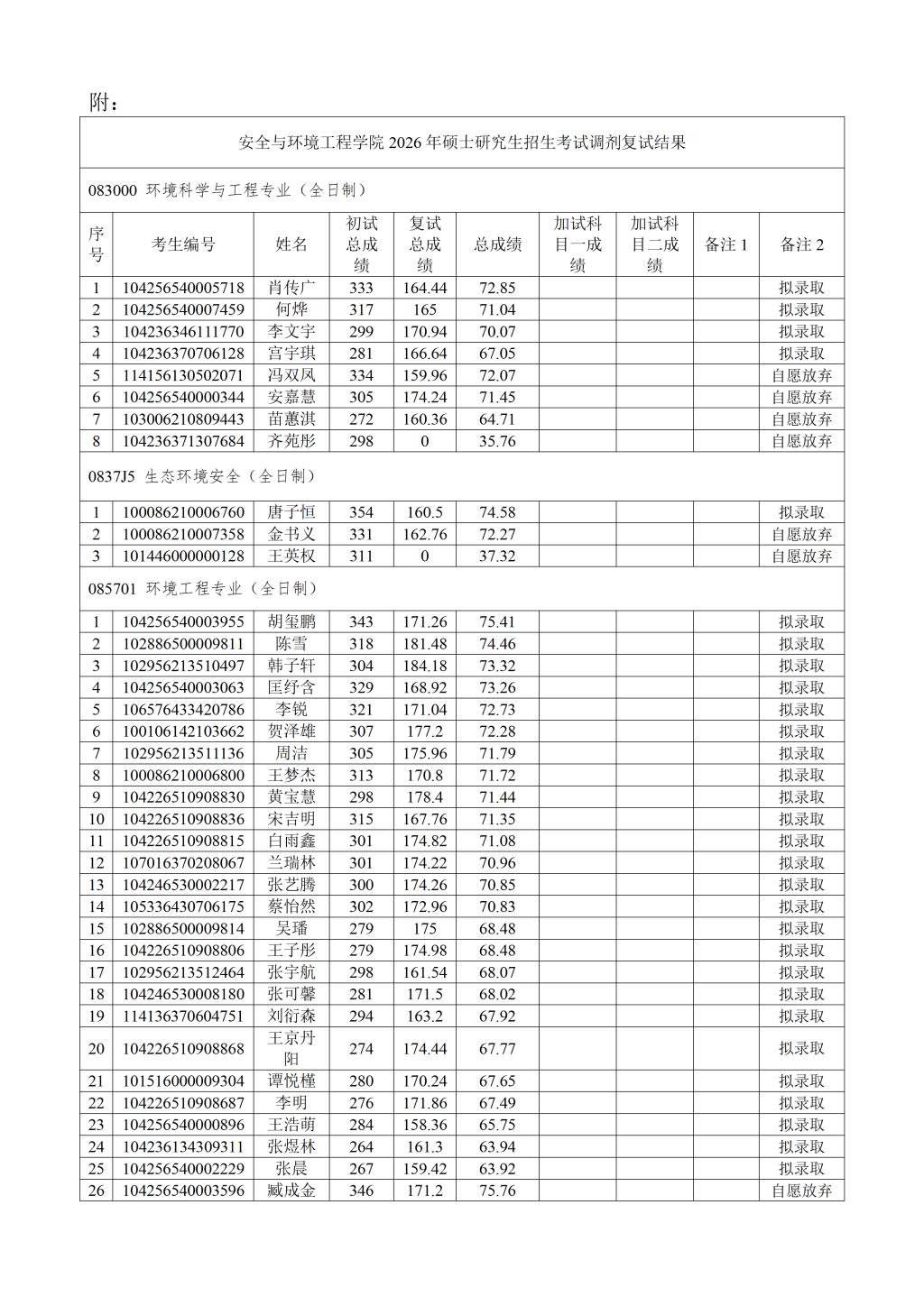 点击:根据《黄色小说 2026年硕士研究生复试录取工作方案》《黄色小说 2026年硕士研究生复试录取工作实施细则》要求,黄色小说 组织完成2026年硕士研究生招生考试调剂复试,现将结果予以公示(名单附后)。
