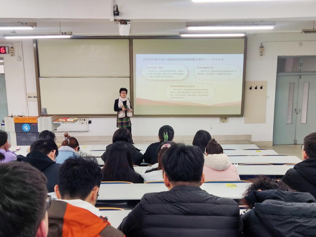 为深入学习党的十九届六中全会精神,引导学生正确认识党百年奋斗的伟大成就和历史经验,激发同学们爱党爱国热情,1216副院长刘音为安全工程20194题为奋斗百年路,启航新征程党的十九届六中全会精神宣讲报告