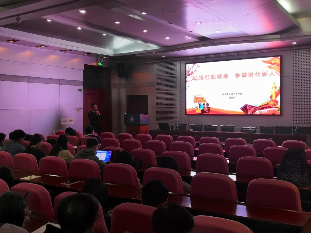 时林超从红船精神的内涵、重要意义以及如何传承红船精神三个方面向同学们讲解了红船精神。并倡导同学们:在中国特色社会主义的新时代中,青年学生也迎来了建设国家未来的好时候,历史告诉我们,要始终牢记党的嘱托,争做时代新人,为实现中华民族的伟大复兴贡献力量。
