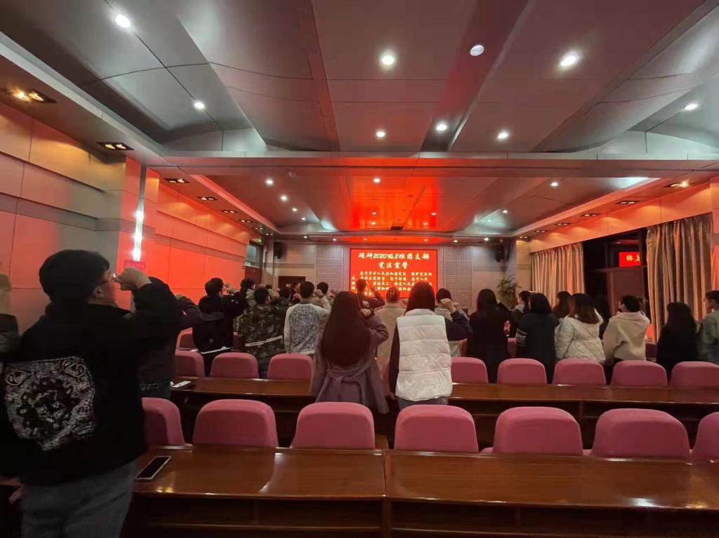各团支部纷纷围绕宪法主题开展具有年级特色的团日活动。低年级团支部组织团员结合自身实际分享了自己对宪法知识的理解,讲述了电信诈骗防范等方面的法律故事,并集体诵读了《中华人民共和国宪法》部分章节,以声音致敬宪法,表达对宪法的敬意。高年级团支部组织团员利用中国普法网等资源学习宪法基本常识的同时,着重学习了有关就业方面的宪法知识。研究生团支部书记姜文静,王德洁等人则结合自身经验,向支部成员分享了著作发明等方面的法律知识。各团支部在活动的最后均举行了庄严宪法宣誓仪式。