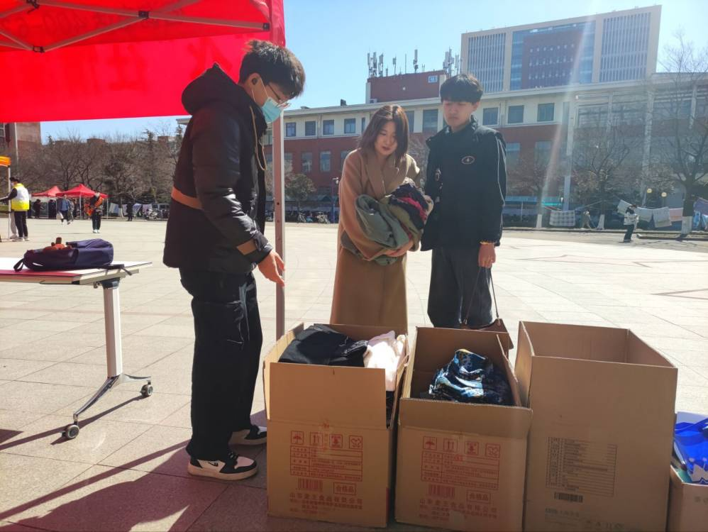 本次活动吸引力众多的同学前来询问、参与,志愿者们耐心地解答,积极热情地引导每一位前来捐赠衣物的捐赠者进行信息登记,并告知他们所捐衣物的去向。保暖衣、过冬的棉袄、外套、毛衣、书本……同学们用一袋袋的衣物和书籍传递着属于他们的温暖。“一点微不足道的小事就能帮助到别人,我真的很开心啊!”“是啊,这才是真正的物尽其用!”同学们纷纷为自己能帮助到别人而欣喜。活动结束后,志愿者对衣物书籍进行了分拣消毒,并将挑选的衣物书籍打包捐赠给山区儿童。
