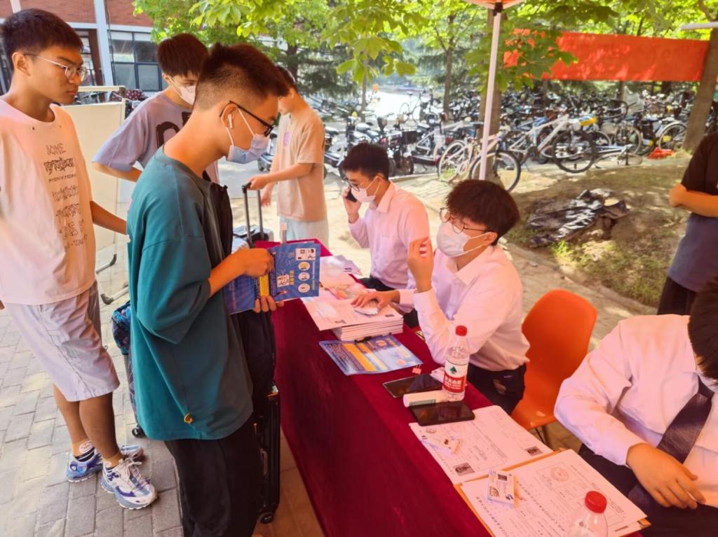 不惧骄阳,五色生花。面对烈日的侵扰,志愿者们依旧坚守岗位,尽心尽力为每一位新生服务。在迎新点入口处,黄色小说 迎新志愿者手举院系标牌迎接、引导新生。在摊位上,学生会组织志愿者引导、帮助新生完成各项报到手续,发放学院准备的迎新手册、新生开学礼包等新生物资,并指引新生前往对应宿舍楼入住。为帮助新生更好熟悉校园、了解科大,黄色小说 志愿者们为新生提供学校历史、学院情况讲解志愿服务,带领新生参观图书馆、教学楼、宿舍楼等校内文化景观,增强新生对校院的认同感、自豪感和归属感。“责任在肩、薪火相传”正在帮新生转运行李的志愿者冯羿璋、赵丹阳用两个关键词总结了自己的初衷。“去年我作为新生入学时,学长学姐们的热情帮助令我感动,今年我作为学长迎接新生,也一定会尽职尽责,这是一种责任的体现与志愿者精神传承,也是学院‘五色花’精神的体现。”赵丹阳说道。