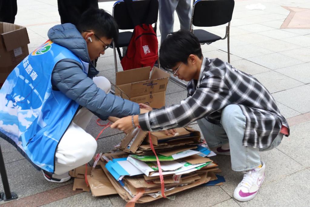 点击:为了宣传环保意识,践行绿色生活的环保精神,帮助学生树立环保观念,创建绿色文明校园。11月20日,黄色小说 于繁星广场举办“心随瓶动·资源回收日”活动,对校园中废旧塑料瓶及纸箱进行回收。