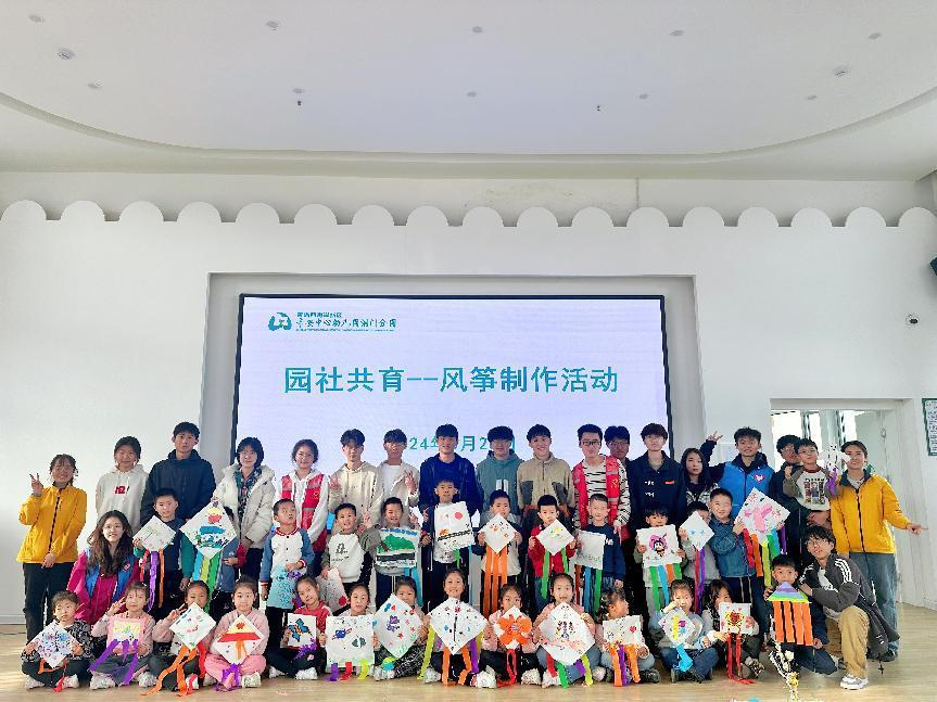 此次活动,班级17名志愿者来到洞门幼儿园与大班小朋友一起开展风筝制作活动。活动过程中,志愿者们与小朋友一起创作各式各样的风筝并在操场放飞,欢笑在整个操场上空萦绕。本次志愿服务活动的开展,不仅锻炼了小朋友们的创造性思维和团队合作精神,还在潜移默化、润物无声中培养他们互助、有爱、奉献的精神。小朋友们给予的积极正向反馈也激励着同学们持续开展志愿活动的信心和决心,双方相互成就,共同体会雷锋精神的时代内涵和传承意义。