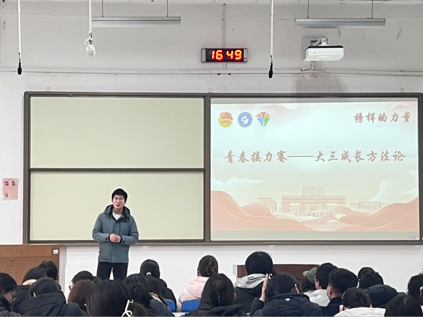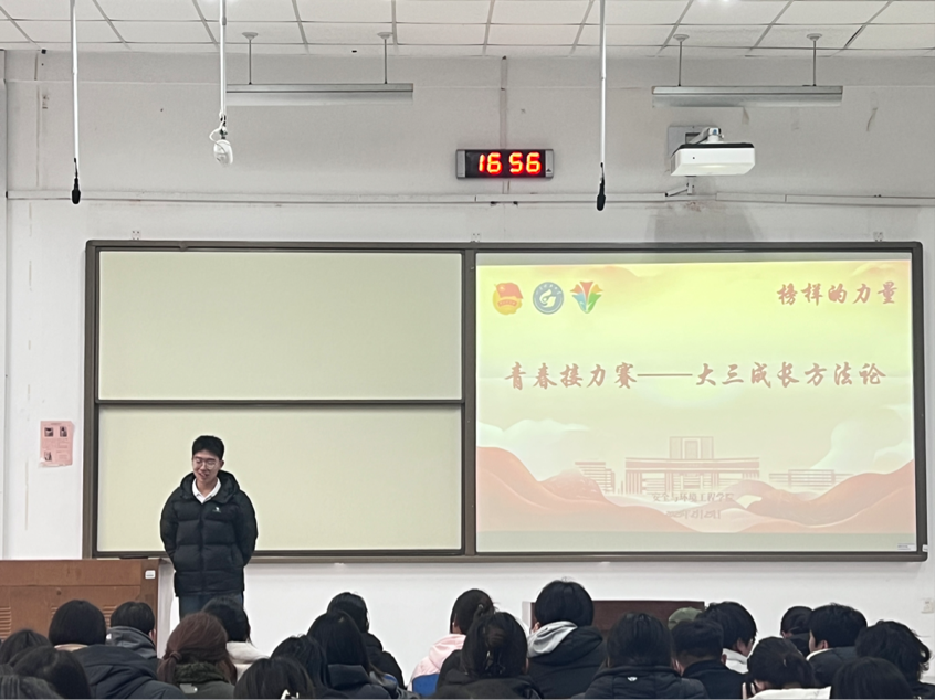在经验分享环节,五位优秀学子以为学弟学妹们传授了宝贵的实战心得。安全工程20214班班长苗泽正详细解读了保研推免信息及备考策略,强调了提前规划和全面准备的重要性;环境工程20213班班长井瑞康揭秘了“求职考公双线作战”的时间管理法,分享了如何在平衡多重任务安排宝贵时间的经验法宝;安全工程20212班李继飞从“专业课攻坚”角度剖析了扎实的专业基础和坚持不懈的努力考研制胜的关键;环境工程20212班洪芳颖结合跨校备考经历,分享了心态调整、压力应对的实用建议;2023级优选计划辅导员崔凌南则通过“辅导员-学生”双重视角,解读了基层就业的发展路径,为同学们提供了多元化的职业选择参考。