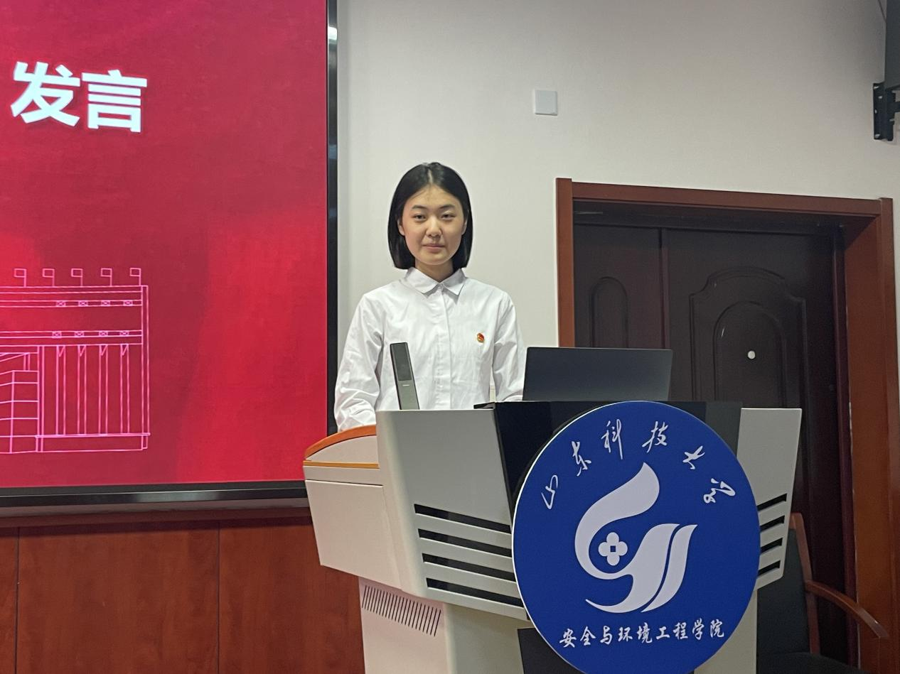 环境工程2023级1班王正贤同学作为领誓人,带领全体新团员面向团旗庄严宣誓,铿锵誓言响彻会场,彰显了共青团员矢志不渝听党话、跟党走的坚定信念。新团员代表、安全工程专业2024级2班贾悦妍表示:“加入中国共产主义青年团不仅是一份荣誉,更是一份责任。我们将以优秀前辈为榜样,在专业学习与实践中锤炼本领。”优秀团员代表、环境工程专业2022级4班王晓辉则结合自身经历,鼓励新团员在科技创新与社会服务中发挥青年力量,让奋斗成为青春最亮丽的底色。