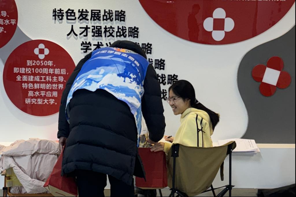 张娜鼓励同学们在最后冲刺阶段要顶住压力、保持状态、全力冲刺。她特别叮嘱大家要注意调节情绪,合理安排作息,以饱满的精神状态迎接挑战。“学院永远是同学们最坚实的后盾,如果遇到问题或困惑,随时可以找老师们沟通。”这番温暖的话语让在场的考研学子们倍感鼓舞。一份份装满祝福的“考研加油包”摆成“上岸”的形状,表达了学院全体师生对考研学子们的真心祝愿。收到礼物的同学们纷纷表示,这份在冲刺时刻送抵的“加油包”让他们在寒冷的冬日里感受到了来自学院的浓浓温情。
