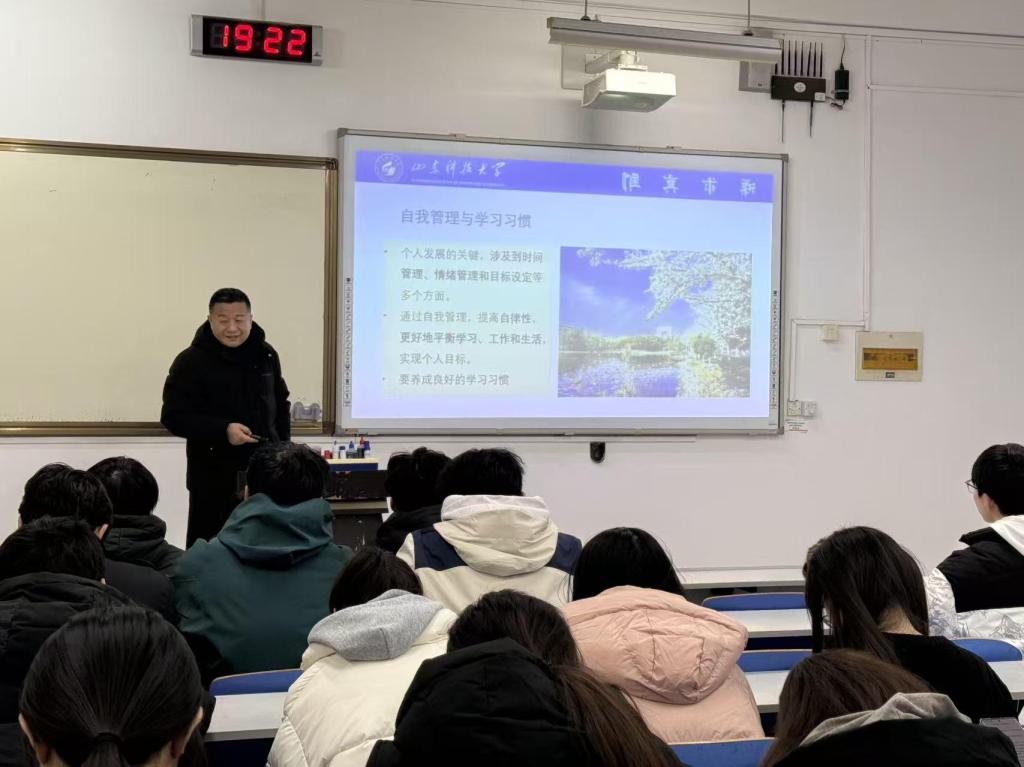 班会紧扣“自我成长与班级建设”主题,围绕自我成长、班风建设、考试规范三大核心内容展开深入交流。周广柱指出,自我管理是大学生从被动转向主动发展的关键,需重点掌握时间管理、情绪调节与目标设定三大能力:按任务轻重缓急分配课堂学习、自主复习与活动时间,通过运动、倾诉及时疏导压力,须遵循“可量化、可实现、有期限”原则,分阶段规划学业与职业发展,他特别强调,要建立“预习-听课-复盘”学习闭环,注重实验操作与理论结合,让自律成为本能习惯。针对班风建设,他提出“班级文化需全员浇灌”的理念,班级应通过组建学习小组攻克专业课难点、实习实践分工协作,培育团队精神,让班级成为“了解、沟通、信任、友谊、合作”的成长共同体。