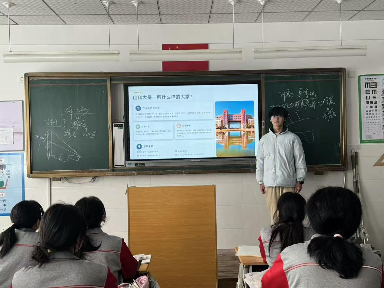这次回母校宣讲,于我而言不仅是一次分享,更是一次成长的回望与初心的坚定。站在宁津一中的讲台上,我既是山科的代言人,也是连接两座母校的桥梁。我传递的不只是一所大学的信息,更是一份希望、一份力量——愿每一位努力的学弟学妹,都能不负青春韶华,在更高更远的地方,遇见更好的自己。而我在照亮你们的同时,也更加清晰了自己前行的方向。