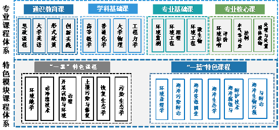 环境工程专业的主要专业课程包括环境工程原理、环境工程微生物、水污染控制工程、大气污染控制工程、固体废物处理与处置工程、环境监测、物理性污染控制工程、环境规划与管理、环境影响评价等。其中海洋方向的主要课程还包括海洋环境监测、海洋生态学、海洋环境学。主要实践性课程包括军训、劳动实践、工程实训、创新创业实践、物理实验、基础化学实验、仪器分析实验、环境工程综合实验、环境工程原理实验、环境监测综合实验、环境工程微生物实验、水污染控制工程课程设计、大气污染控制工程课程设计、固体废物处理与处置工程课程设计、认识实习、生产实习、毕业实习、毕业设计(论文)等实习实践教学环节。