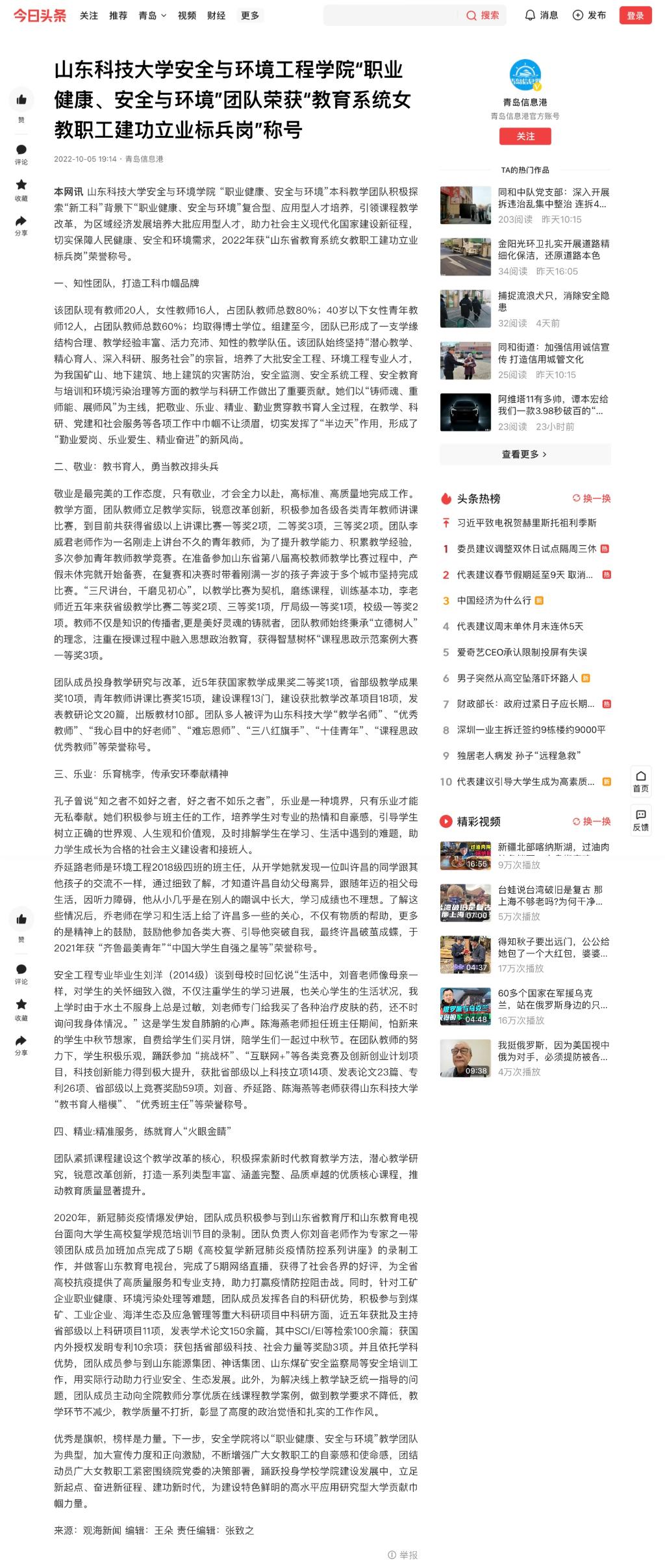 黄色小说 “职业健康、安全与环境“团队荣誉”教育系统女教职工建功立业标兵岗”称号