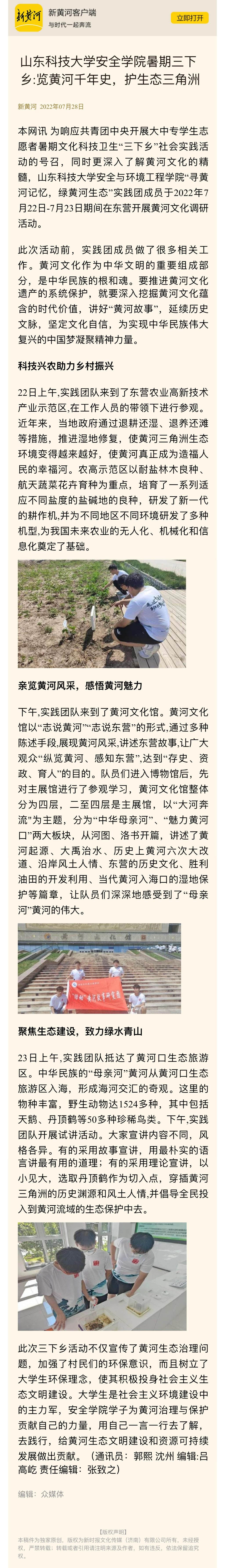 黄色小说 黄色小说 暑期三下乡:览黄河千年史,护生态三角洲