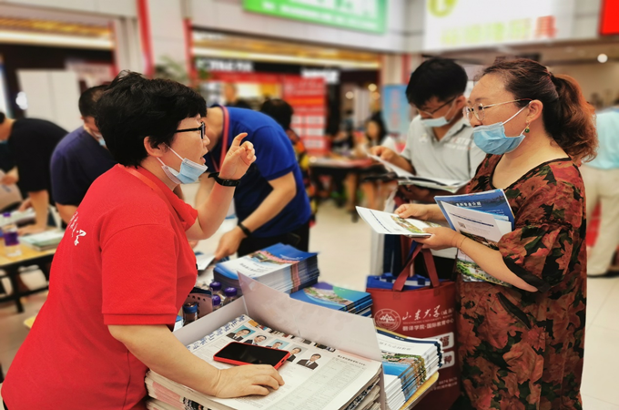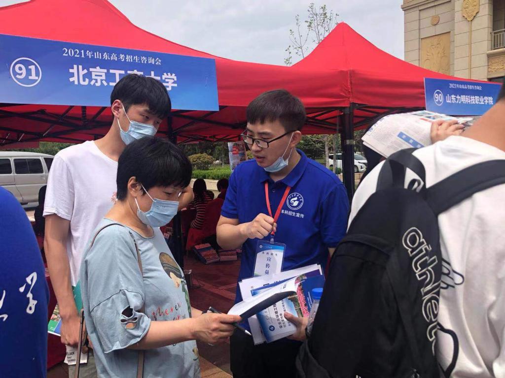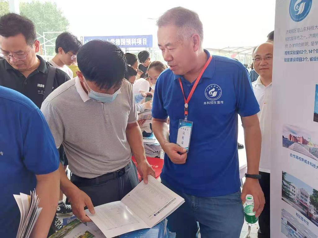 在招生咨询现场,招生老师们为学生和家长发放了学校的招生简章和学院的专业简介,细致耐心地为学生和家长们介绍了山科大的优势专业和报考方法,针对学生的高考分数和名次以及学生的兴趣爱好和个人特点为考生推荐本校适合的专业。在每一个招生点都可以看到山科大的摊位被热情的学生及家长围着,是最火爆的招生摊位。招生老师们克服了交通不便和恶劣天气的困难,即使嗓子都沙哑了,但是只要有学生和家长来咨询,他们马上又开始为家长和考生答疑解惑。