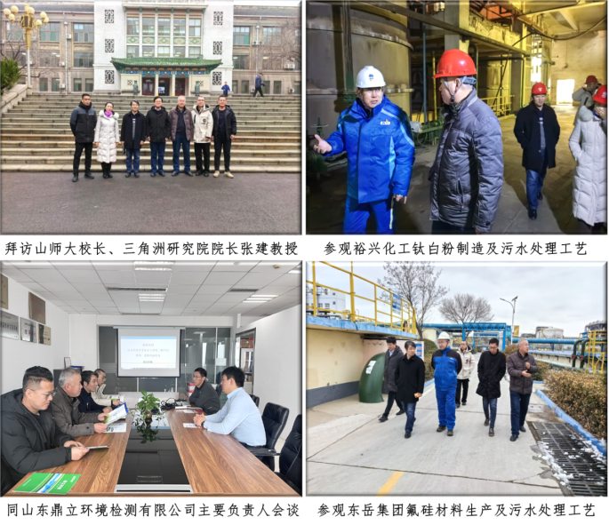 随后,考察组实地考察了济南裕兴化工有限公司、山东东岳集团、山东鼎立环境检测有限公司等代表性企业,在相关企业负责人的陪同下,详细了解了各企业的产品生产工艺、环保设施投入运维、毕业生能力需求、环保技术瓶颈等情况。此次实地调研,有助于环境学科在后续人才培养和科研攻关上聚焦于企业环境问题发展的新形势新需求,立足于“需”着眼于“用”,在立足企业实际需求的基础上,开展环保技术研发工作,以促进企业技术升级和高校科研成果转化。