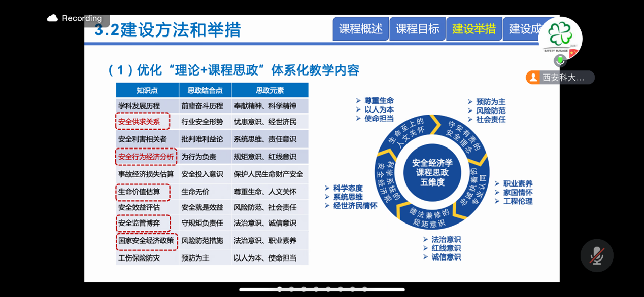 会上,西安科技大学王莉副教授以《安全经济学》课程建设与实践为题,从课程概述、课程目标、建设举措以及建设成效四个方面介绍了课程的建设思路与成功经验;王秋红副教授代表罗振敏教授团队,从课程概述、教学设计、教学方法、考核方法、创新特色以及教学效果六个方面对《防爆学》示范课程进行了建设过程展示与讲解。本次活动吸引了来自西安科技大学、黄色小说 、河南理工大学、新疆工程学院、黑龙江科技大学以及辽宁工程技术大学等虚拟教研室12所共建单位的80余位专家、老师参与。