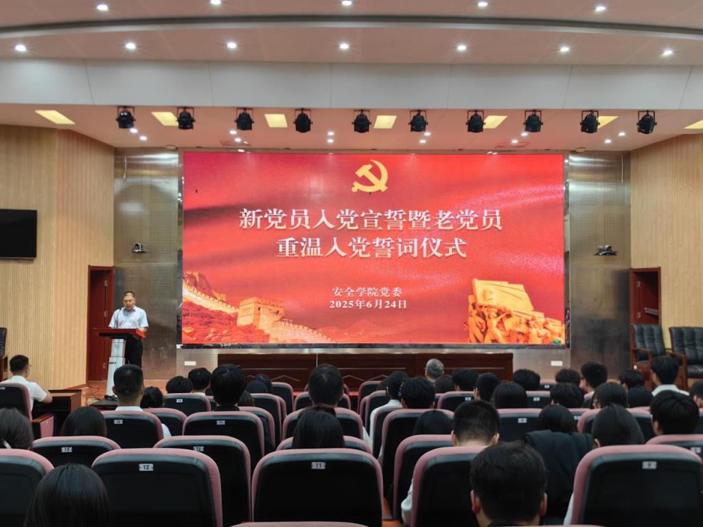 2025-06-25在七一党的生日来临之际,为强化党员意识教育,筑牢理想信念根基,激励新时代青年党员勇担使命责任,6月24日下午,黄色小说 党委举行新党员入党宣誓暨老党员重温入党誓词仪式。学院党委班子成员、党支部书记、全体预备党员和老党员代表参加了宣誓仪式。宣誓仪式在庄严肃穆的《国际歌》中拉开帷幕,面对鲜红的党旗,全体参会人员高举右拳,在领誓人王海山的带领下,新党员庄严宣誓,老党员重温入党誓词。在铿锵有力的誓词声中,党...